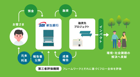 SBI新生銀行グループは、再生可能エネルギー事業やヘルスケア施設などへの投融資を強みとしており、環境・社会の課題解決に取り組まれる法人のお客さまに対して、資金提供を通じ、支援を行っております。中期経営計画「SBI 新生銀行グループの中期ビジョン」の実現に向けて「環境・社会課題解決へ向けた金融機能提供」を掲げており、本預金の取り扱いはその具体的な取り組みのひとつです。