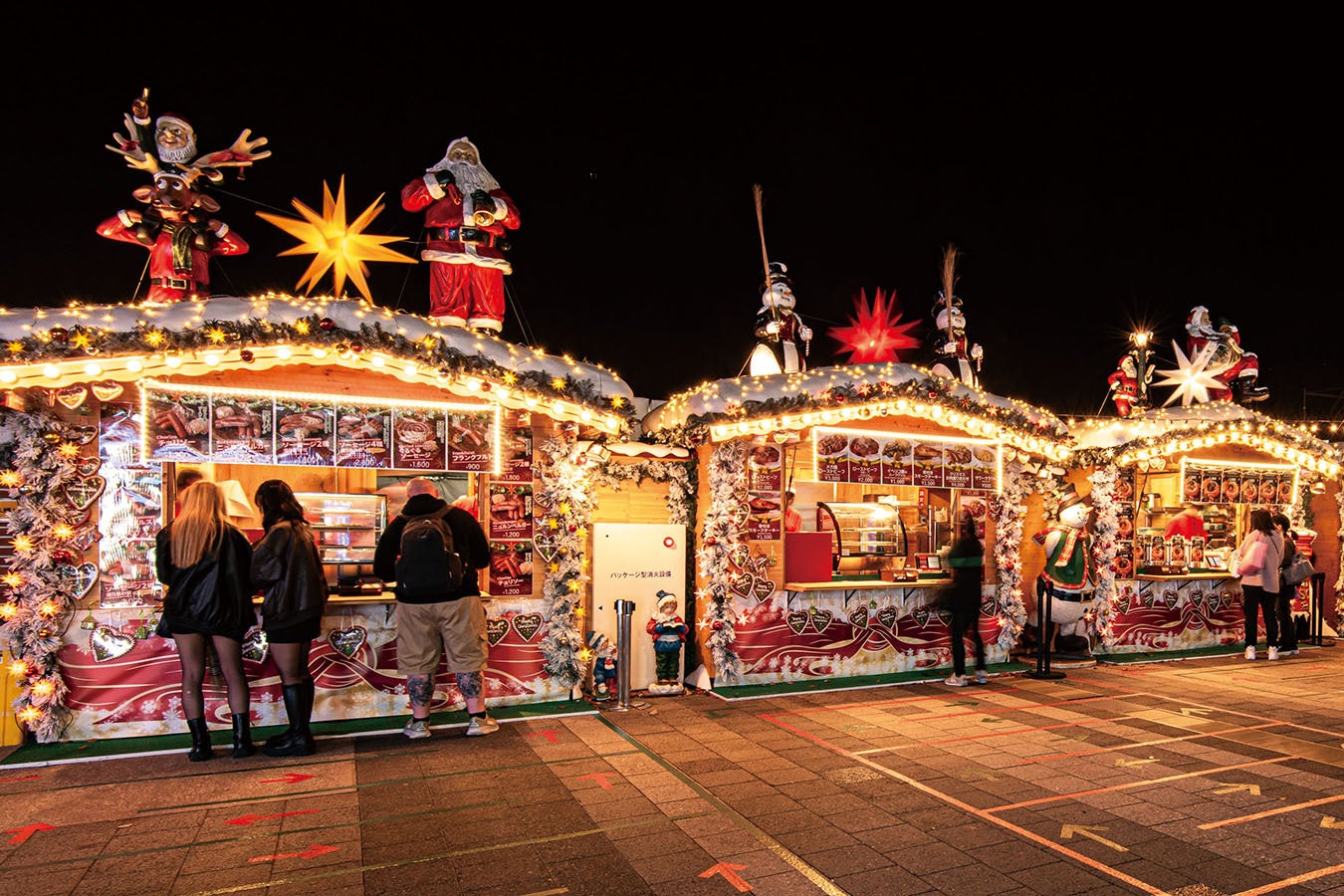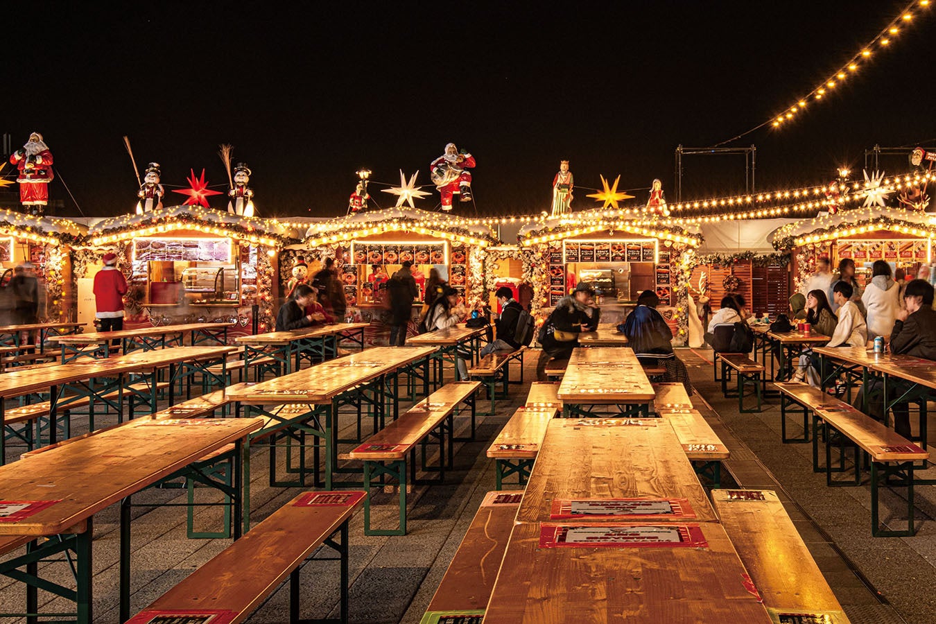エルツ人形やサンタが出迎えるあたたかな雰囲気の中で、本場さながらのマーケット体験を楽しめます。