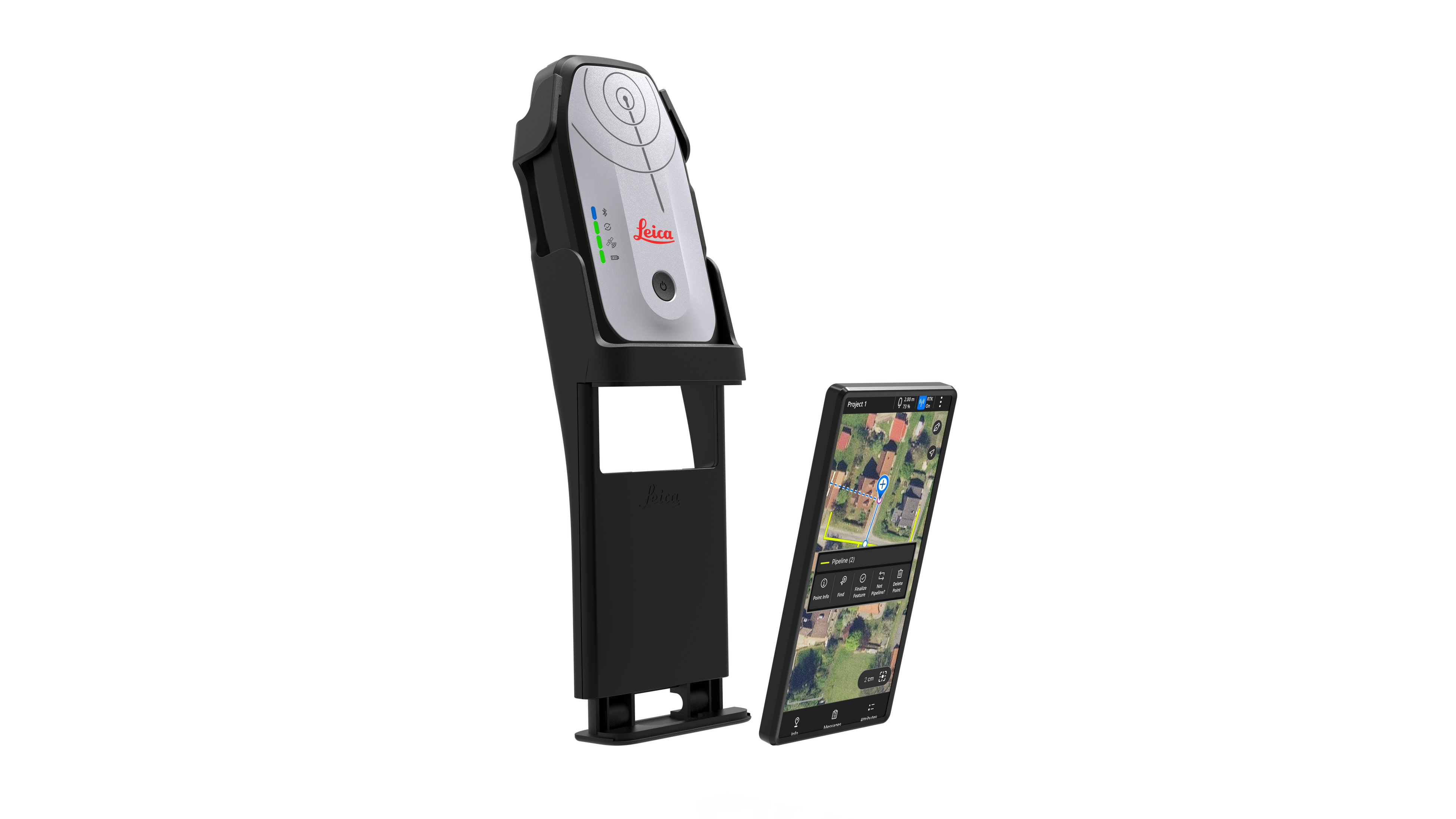 FLX100 plus Tilt は測量ポールに取り付けて高精度データを取得したり、汎用のハンディ型ホルダーでスマートフォンやタブレットと一緒に使用したりすることが可能です。iOS、Android、または Windows を実行しているスマートフォンやタブレットと接続できます。Leica Zeno FLX100 plus Tilt スマート アンテナには、傾斜補正機能が搭載されており、アンテナをどの方向に傾けても正確なポイトを測定でき、移動しながらポイントを素早く楽に測定したり、これまでアクセスできなかったポイントを測定したり、今までよりも迅速かつ効率的に測量することができます。