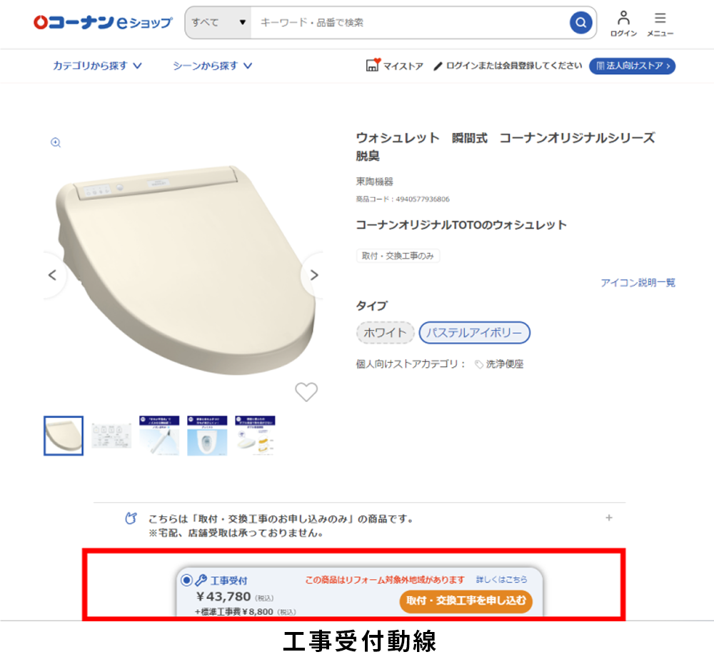 今まで商品の購入とは別に工事申し込みを行う必要がありましたが、これにより購入者はスムーズな商品購入から申し込みまでの流れを実現しました。