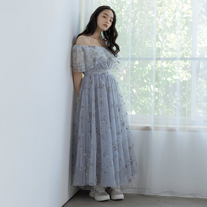 甘くなり過ぎない大人っぽいフラワー刺繍が施された繊細なチュール生地を贅沢に使用した、ロマンティックムード溢れるワンピース。