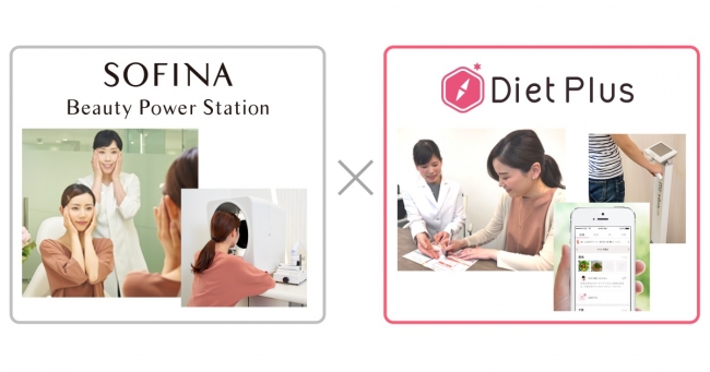※今回のコラボレーションは、双方に美肌目的で来店されたお客様により充実したサービスをご利用いただくことを目的としているため、まず始めに「ダイエットプラス」のラボに来店され、お試しカウンセリングを受講された方には、ソフィーナのビューティーパワーレッスンを無料で受講いただけます。