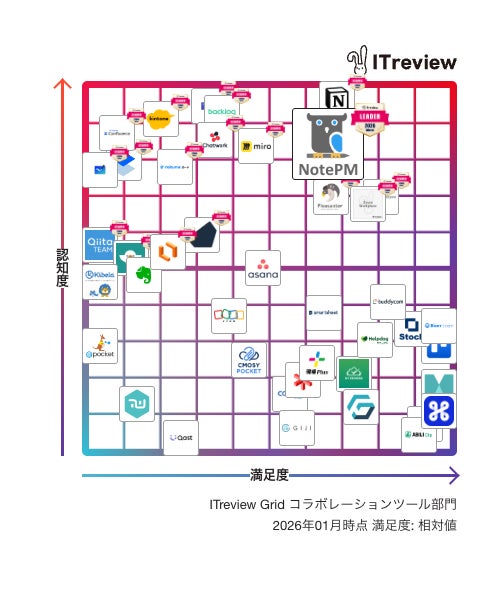 株式会社プロジェクト・モードが提供する、ナレッジ管理SaaS「NotePM ( https://notepm.jp )」は、アイティクラウド株式会社運営のIT製品レビューサイト「ITreview」において、満足度・認知度ともに優れた製品であると評価され、「ITreview Grid Award 2026 Winter」のマニュアル作成ツール部門、コラボレーションツール部門、グループウェア部門、Web社内報部門において「Leader」を受賞いたしました。