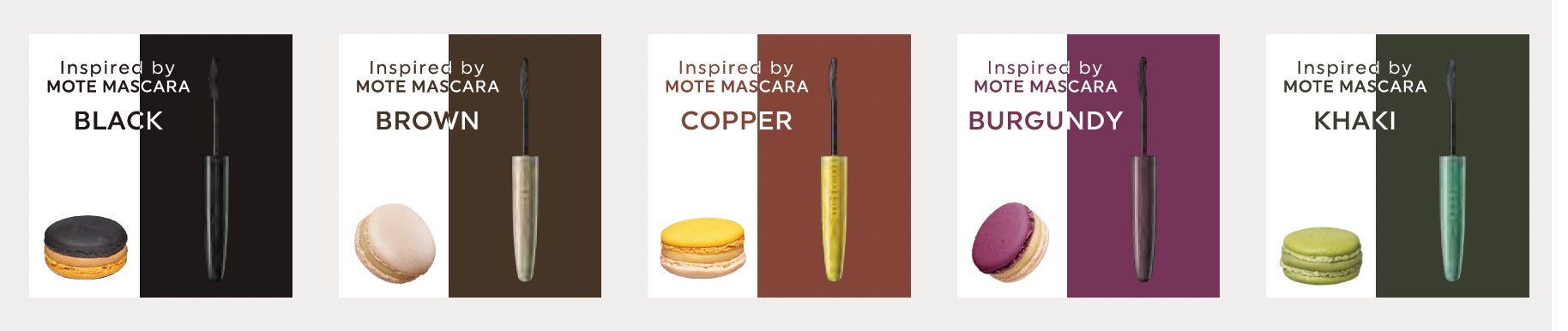 『MOTE MASCARA™』 の5色にインスピレーションを得たマカロンが登場。プロダクト細部まで妥協を許