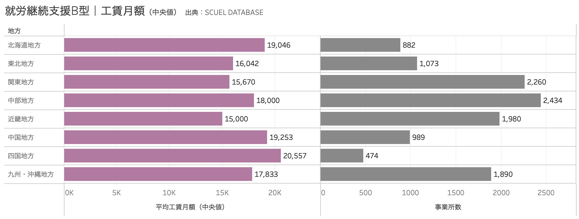 就労継続支援B型|都道府県別の工賃月額(中央値)