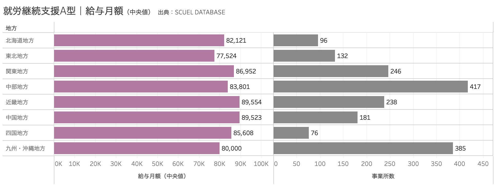 就労継続支援A型|都道府県別の給与月額(中央値)