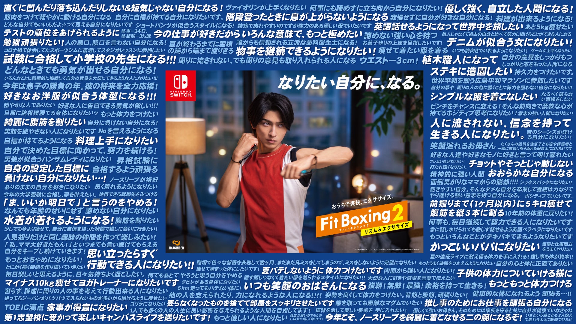 イマジニア株式会社(東京都新宿区、代表取締役社長 兼 CEO 澄岡和憲、以下「当社」)は、発売中のNintendo Switch™ソフト「Fit Boxing 2 -リズム&エクササイズ-(以下「Fit Boxing 2」)」につきまして、7月7日からSNSにて実施した「なりたい自分に、なる。」投稿キャンペーン記念作品を公開しましたのでお知らせします。