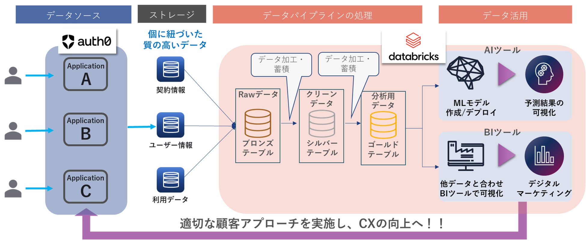 フレクトがマクニカと共に、周辺システムの連携含め、Auth0及びDatabricksの製品を組み込んだ顧客データ基盤を実装します。
