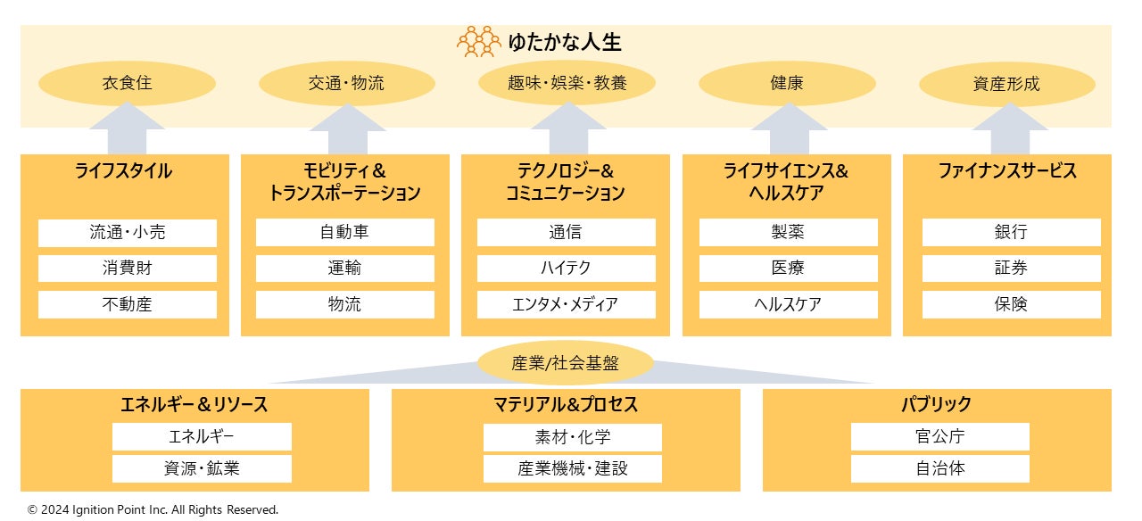 デジタル技術の進化や消費・生活様式の変化により、様々な業界において構造変革が加速しています。一方で、日本社会や企業が抱える課題感およびニーズは複雑化し、従来の業界という枠組みでは解決が難しくなっています。このためイグニション・ポイントは、最新のテクノロジーや技術、ビジネスモデルと、各インダストリーへの深い知見を融合してイノベーションに取り組むことが必要であると考えています。