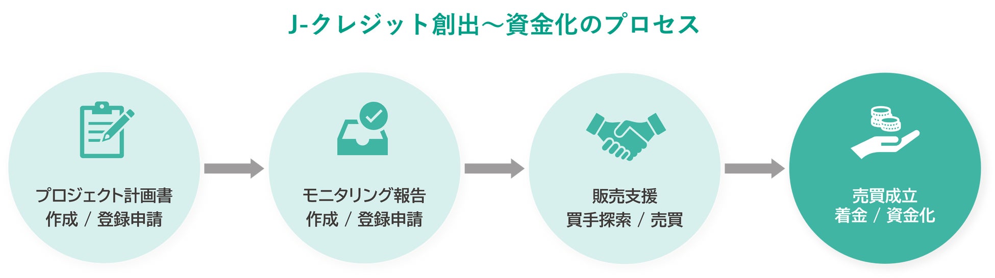 J-クレジット制度とは、省エネルギー・再生可能エネルギー設備の導入による温室効果ガス排出削減量や、適切な森林管理による温室効果ガスの吸収量を、日本政府が「J-クレジット」として認証する仕組みです。発行されたJ-クレジットは、他の企業との間で取引することができ、J-クレジットの購入者は自身の温室効果ガス削減目標の達成等に活用が可能です。