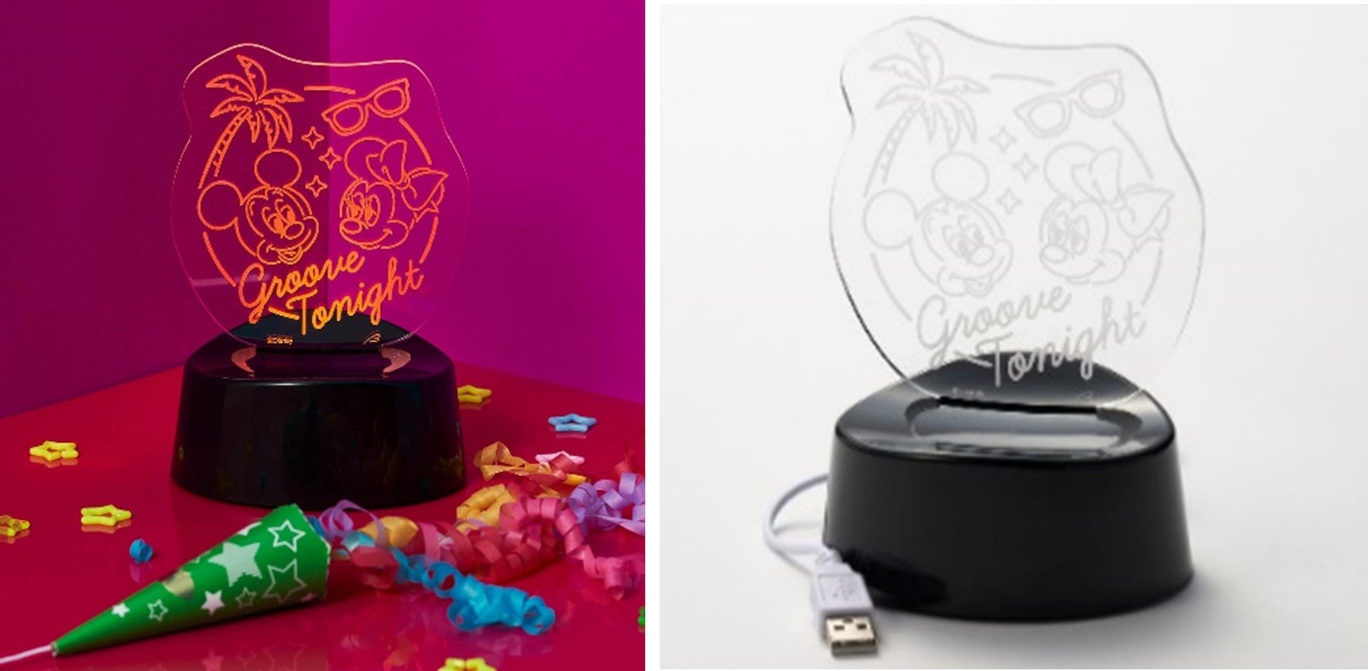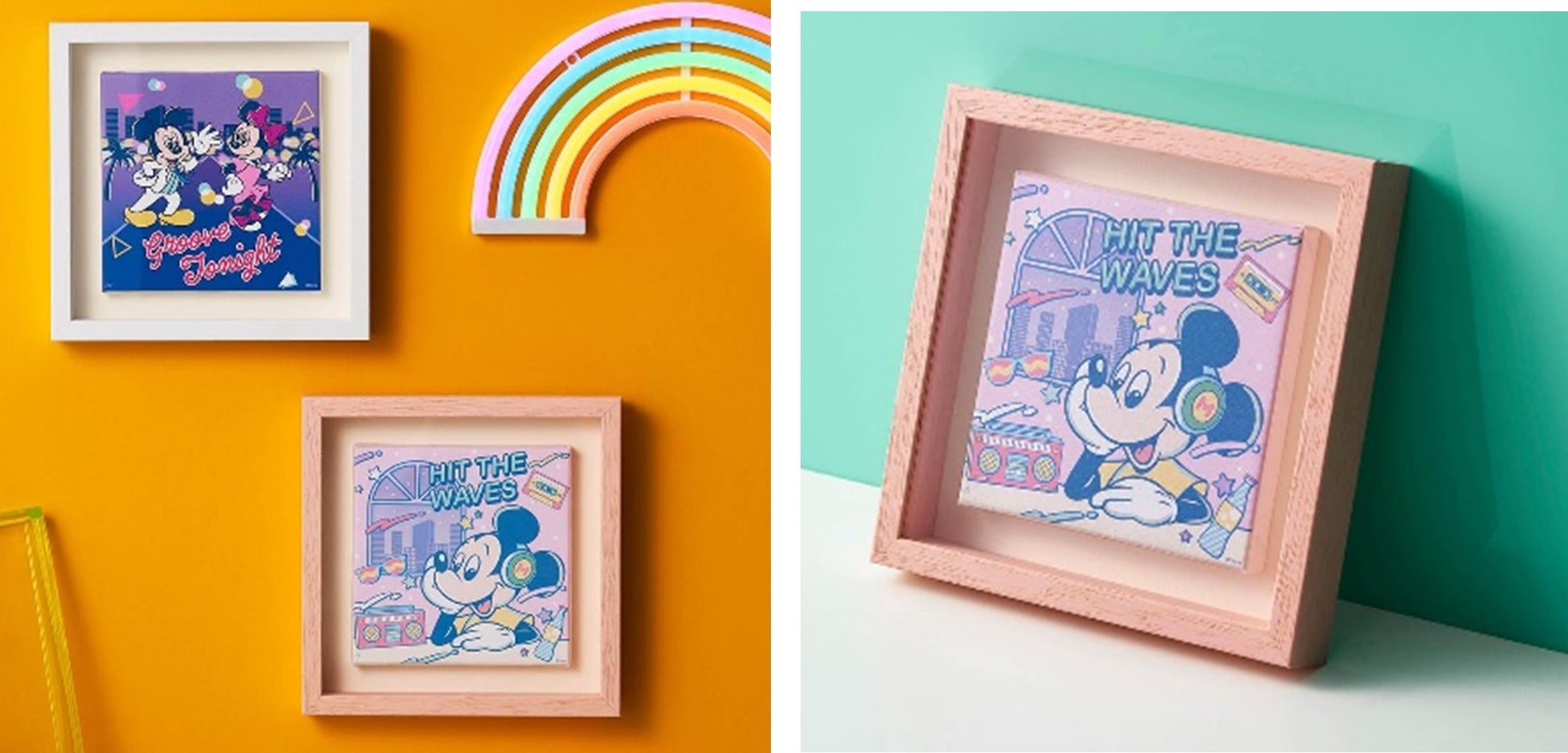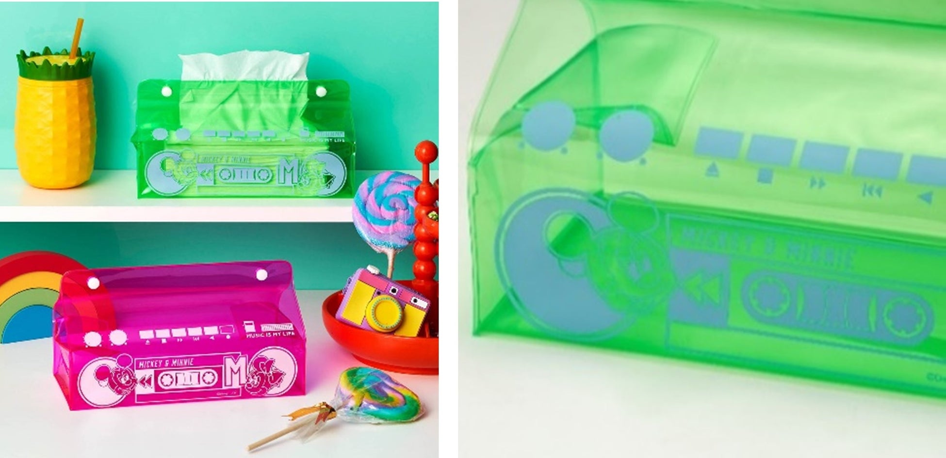 「レトロポップ」がテーマ。暗い場所で光る蓄光プリント使いのショルダーバッグやラジカセデザインのティッシュケース、ネオンサイン風アクリルライトなど、80年代の流行や雰囲気を取り入れた目を引くデザインがポイント。お揃いコーデができるユニセックスTシャツは、凸凹のある発泡プリントやさりげないラメプリント使ってキャラクターを表現しており、テーマパークに行くときはもちろん、大人のディズニーファンが普段のファッションにも取り入れることができるアイテムです。また、インテリア雑貨はお部屋に置くだけで80年代にタイムスリップしたかような空間を演出することができます。