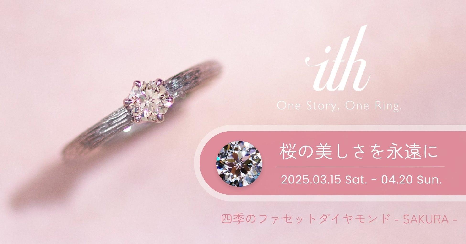 “One Story. One Ring.” がコンセプトのオーダーメイド結婚指輪ブランドith(イズ)では、春の訪れに心が躍るこの季節、2025年3月15日(土)~4月20日(日)までith表参道アトリエ限定にて「桜の美しさを永遠に」をテーマに掲げ特別な婚約指輪づくりをご提案します。