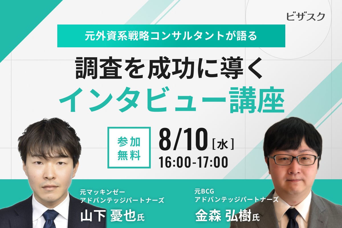 【8/10(水)16時】無料オンラインセミナー「元外資系戦略コンサルタントが教える 調査を成功に導くインタビュー講座」を開催