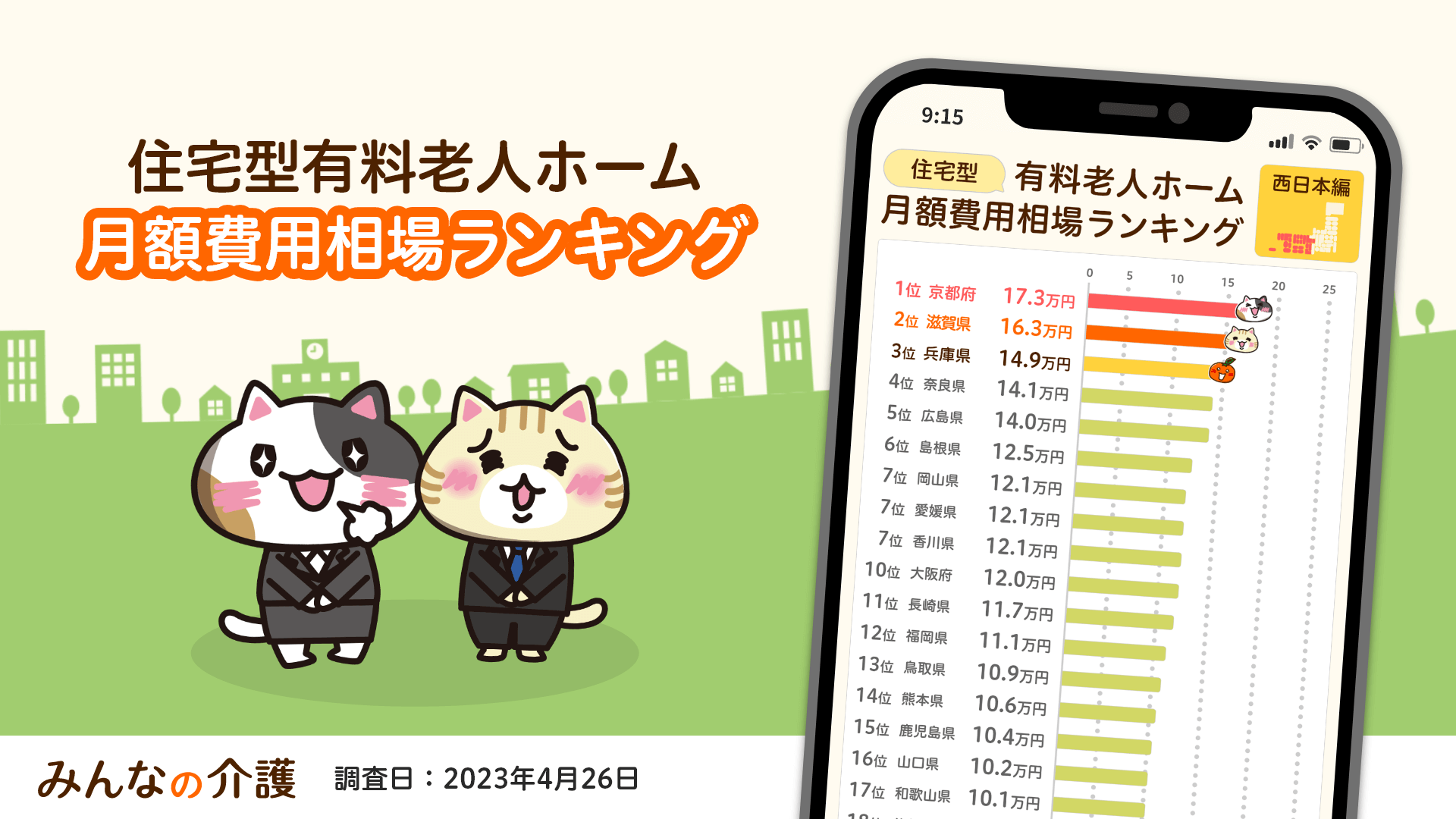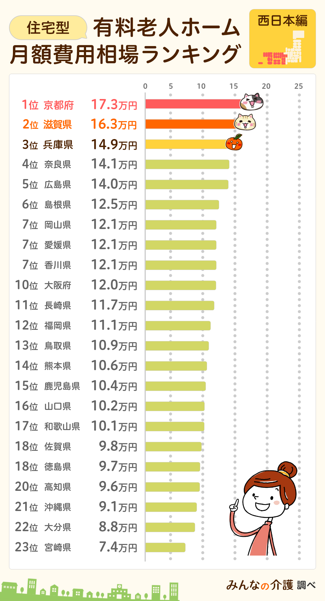 【みんなの介護】老人ホームの月額費用ランキング<住宅型有料老人ホーム 西日本編>