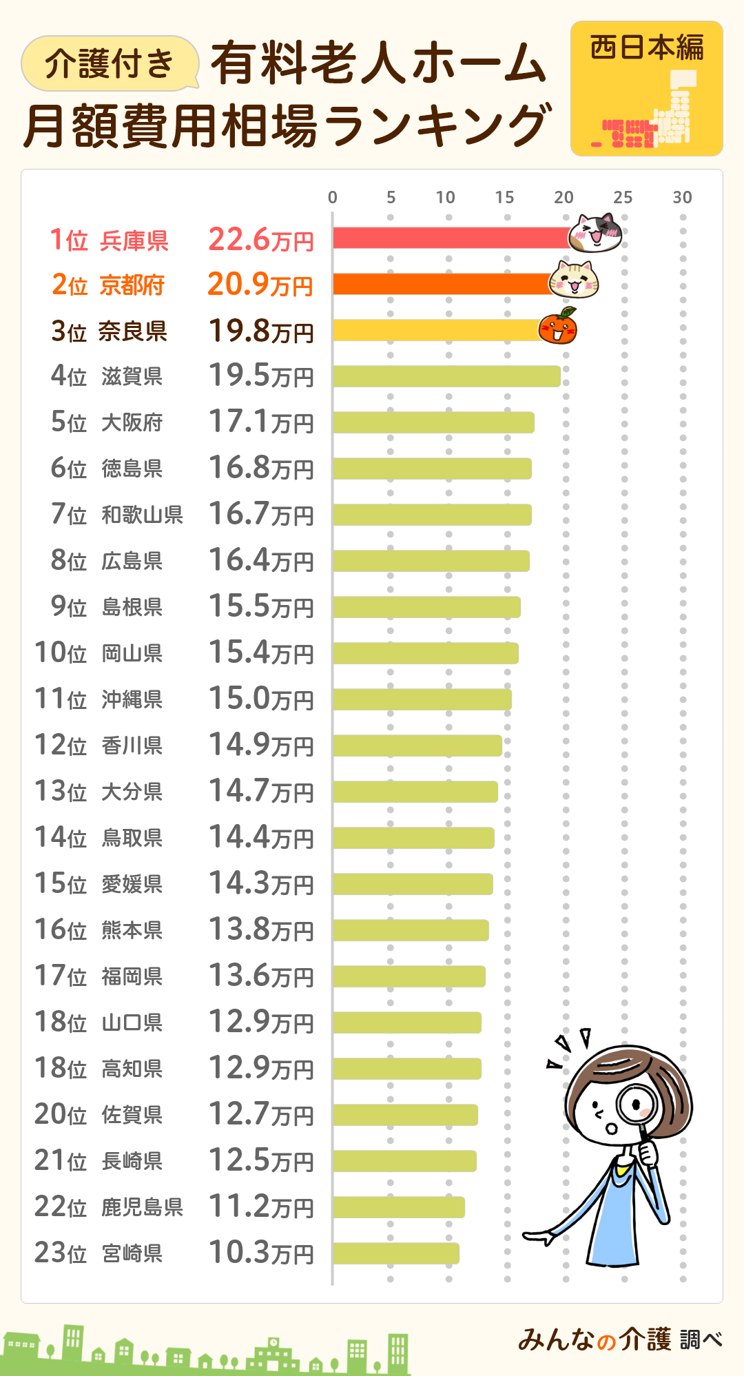 参考:介護付き有料老人ホームの月額利用料ランキング<西日本編>
