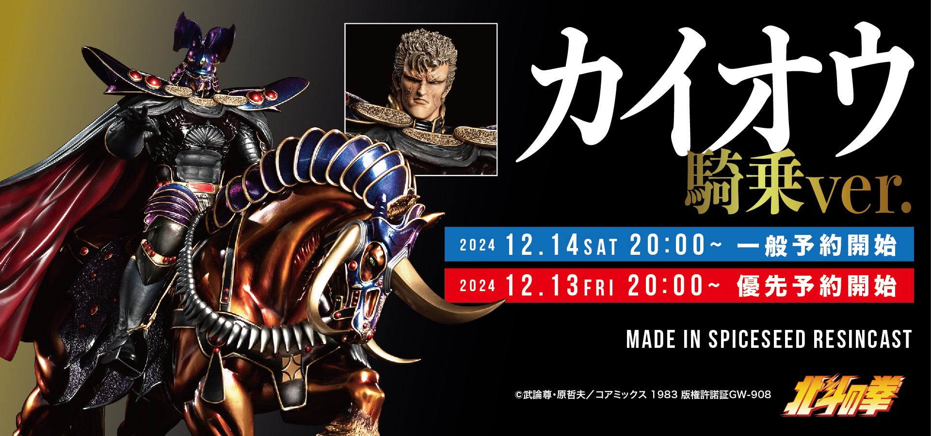 ハイクオリティフィギュアの製造・販売で好評を博している株式会社SpiceSeed フィギュア事業部(本社:東京都墨田区)は、2024年12月14日(土)20時より、北斗の拳シリーズ『カイオウ 騎乗ver.』を予約開始いたします。