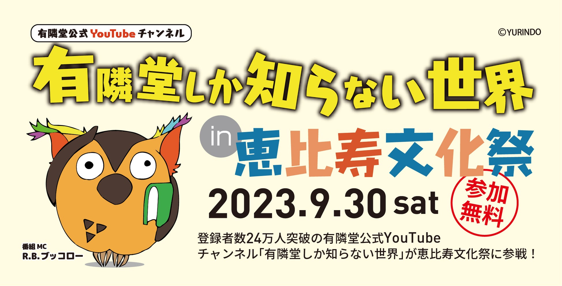 登録者数25万人突破の有隣堂公式YouTubeチャンネル「有隣堂しか知らない世界」が恵比寿文化祭に参戦!本好き、文房具好きはもちろん、お子様が楽しめる企画もご用意しました。企画の数々をどうぞお楽しみください。