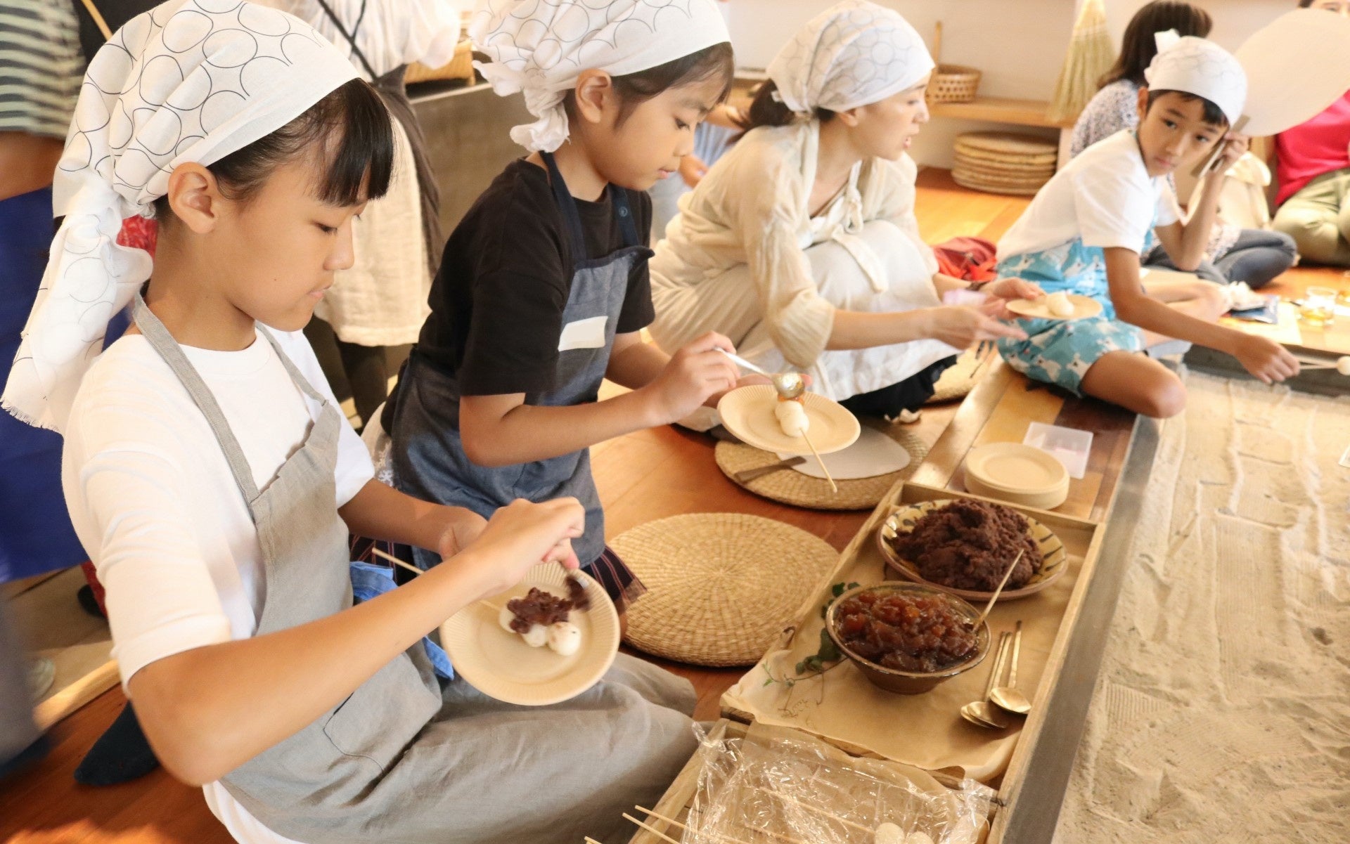 “恵比寿地域の縁側のような居場所”を目指し、「こどもと食」をテーマとしたイベントを開催する景丘の家では、こども達手作りのお団子を囲炉裏で焼いて、お客様にお出しする、こどもが主役のカフェを展開。お団子はあんことみたらしの2種類を販売します。