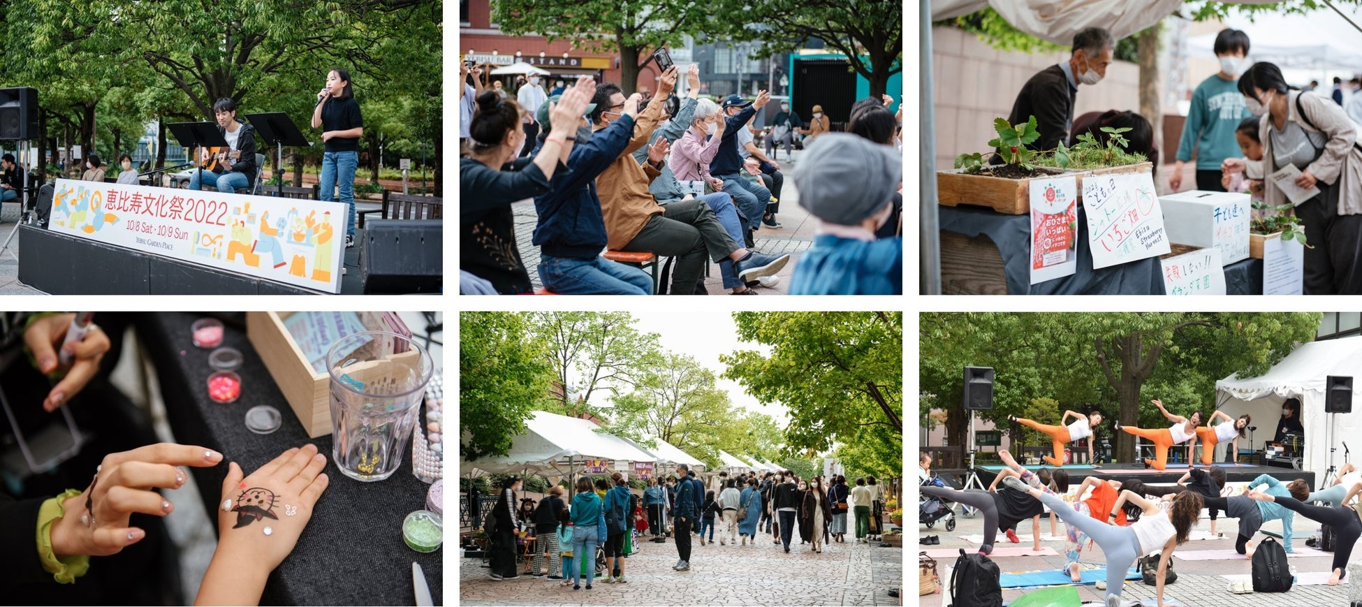 当日は、恵比寿ガーデンプレイスのセンター広場/時計広場のステージやブース、まちなか企業のオフィスや店舗を含む複数会場にて、親子で楽しめる音楽やダンス、絵本やハンドメイド雑貨などのブース販売に、お子さまでも楽しめるワークショップ、限定グルメといった多彩なジャンルのコンテンツをお楽しみいただけます。また、昨年オープンしたばかりの恵比寿ガーデンプレイス「センタープラザ」内、「THE NORTH FACE CAMP」や「DCM DIY place」など初参加のテナントが開催するワークショップにもぜひご注目ください。
