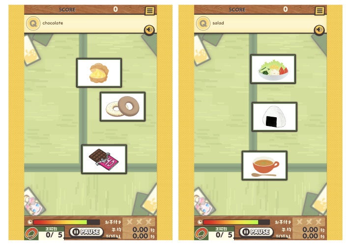 従来の単語学習コンテンツ「瞬間タッチ」では日本語→英語、英語→日本語と、文字情報のみのコンテンツでしたが、音を聞きながら絵を選ぶ本機能が追加されたことで、アルファベット習得前のお子さまでも楽しみながら単語学習をしていただくことが可能になりました。