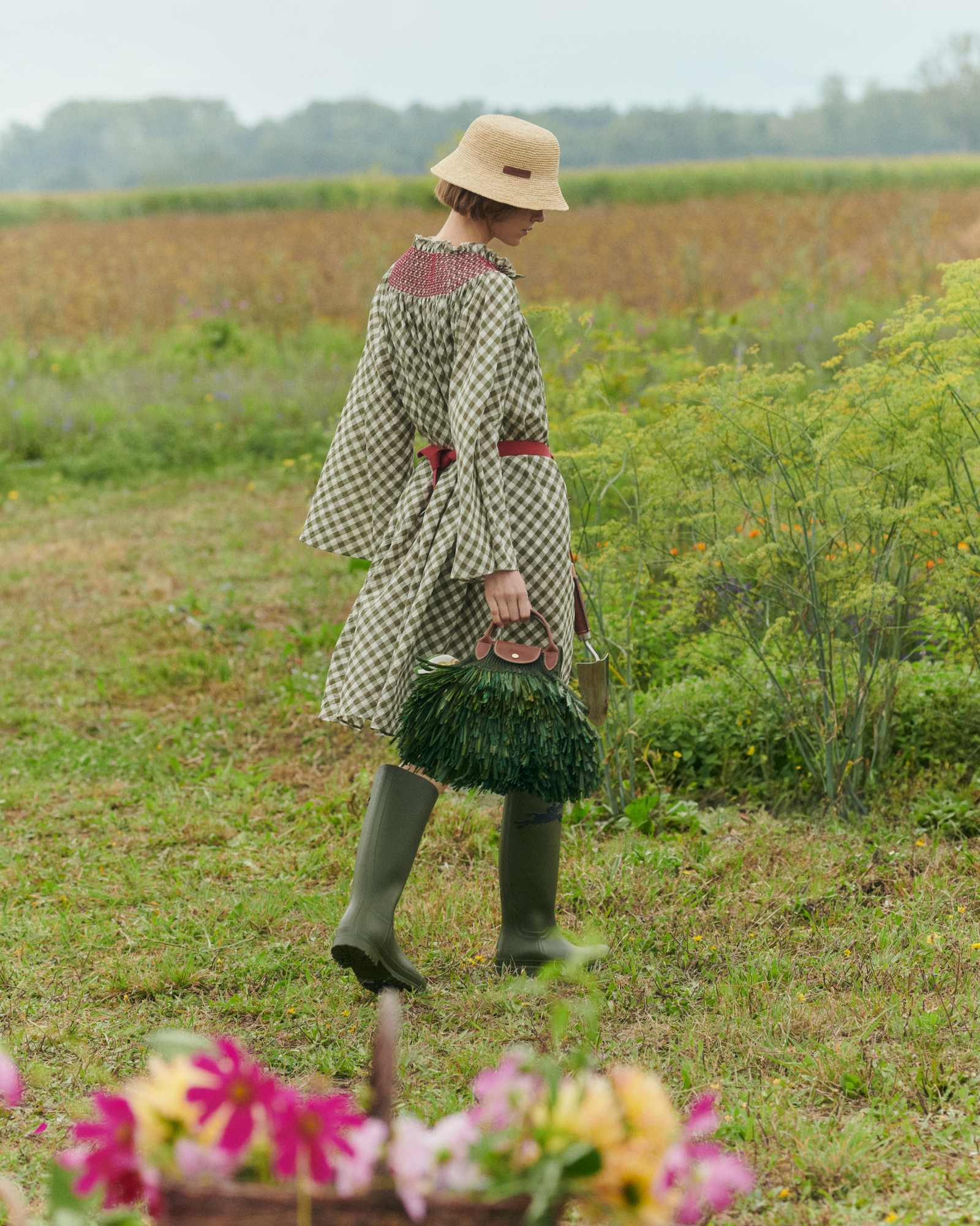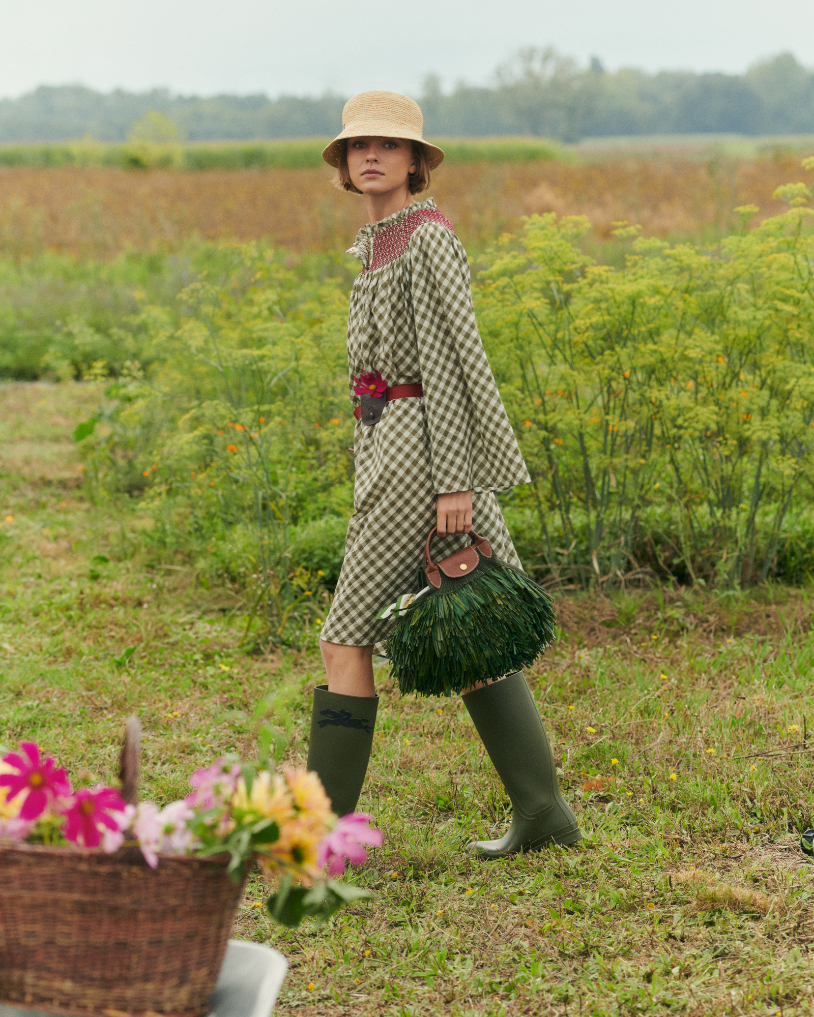 2025年夏コレクション「LIVE GREEN!」には、「ル プリアージュ®」のエッセンスを受け継いだキモノジャケットや庭師風オーバーオール、レザーやヴィシー柄(ギンガムチェック)のひねりが効いたプレタポルテ、そしてミュール、サンダル、バレエシューズ、フラットブーツ、スニーカーといった各種シューズが揃います。