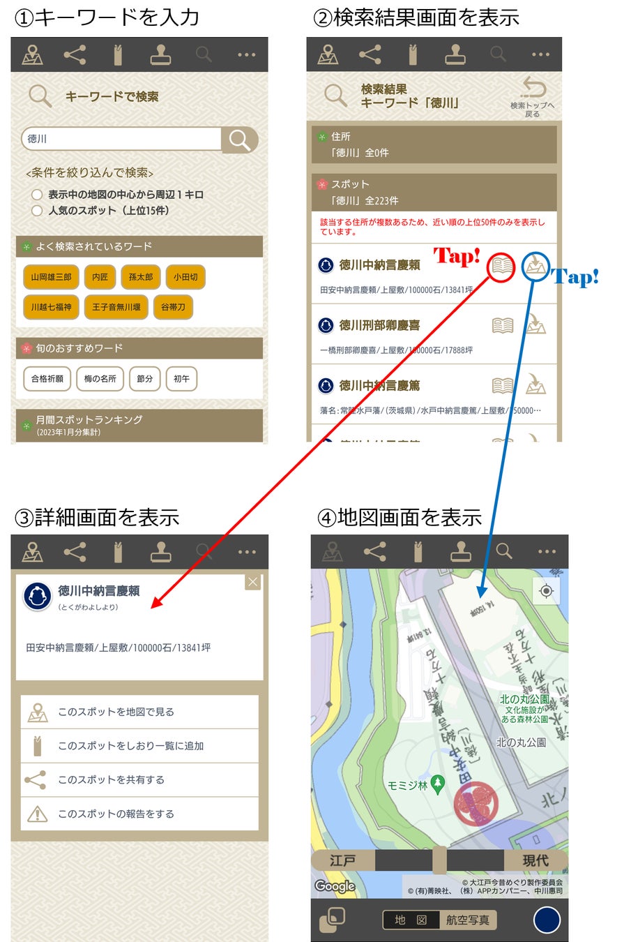 古地図アプリ「大江戸今昔めぐり」が人物名検索機能を強化