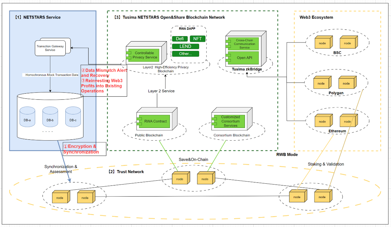 「Tusima」はイギリス オックスフォード大学の博士号を修了した当社顧問でもある、Ruan Anbang(ルアン アンバン)博士以下チームが開発したRWA DAPP環境を含むWeb3.0の基盤システムであり、コンセンサスメカニズムにより取引の安全性と信頼性を確保しており、網羅的なデータの暗号化を含め、民間レベルで最高のセキュリティ機能と保証レベルである EAL4(Common Criteria EAL4) に準拠し、強力なプライバシー保護を実現する次世代システムです。非中央集権型の分散型ストレージシステムによりデータの耐久性と高い可用性が期待される基盤システムです。
