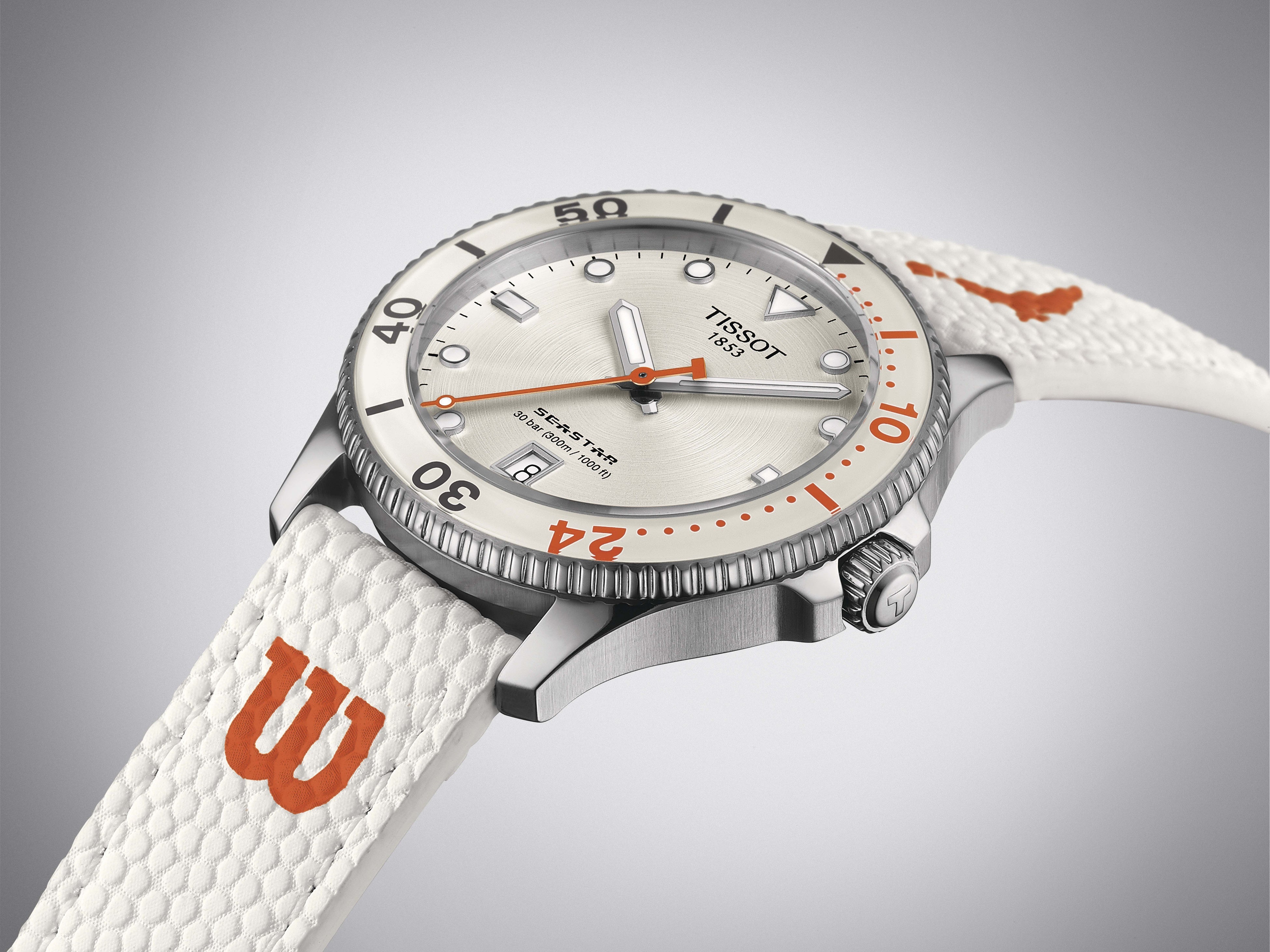 今回、ティソ シースター Wilson® WNBA [TISSOT SEASTAR Wilson® WNBA] として発表された40mm径の2モデルは、WNBAのみならず、スイスの時計製造ブランドであり、WNBAのオフィシャルタイムキーパーであるティソ、そしてWNBA公式球であるWilson®のブランドの特徴が体現された特別なモデルです。