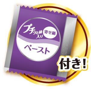 しょうゆをベースにカツオや昆布のだしを加えた和風スープです。かやくには磯の香り豊かなわかめに加え、鍋具材をイメージして大豆そぼろ、ニンジン、ハクサイを加えました。別添の「プチッと鍋入りペースト」を加えることで、「プチッと鍋 寄せ鍋」の風味が広がります。