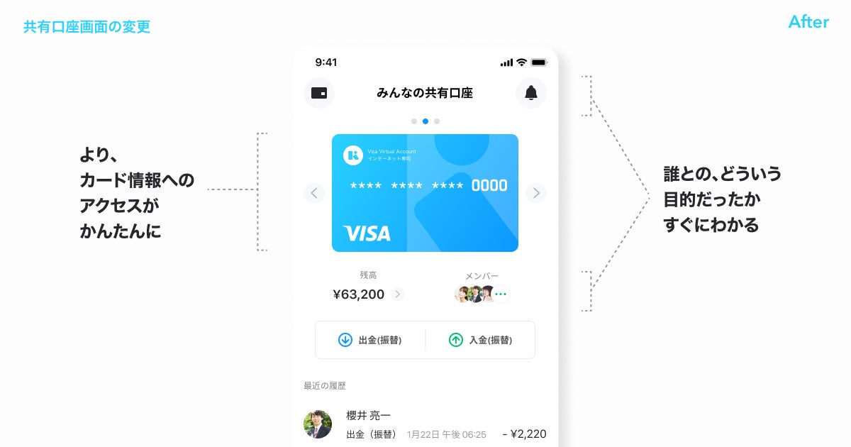 共有口座の利用者に表示される「ウォレット画面」も以下の通り変更しています。