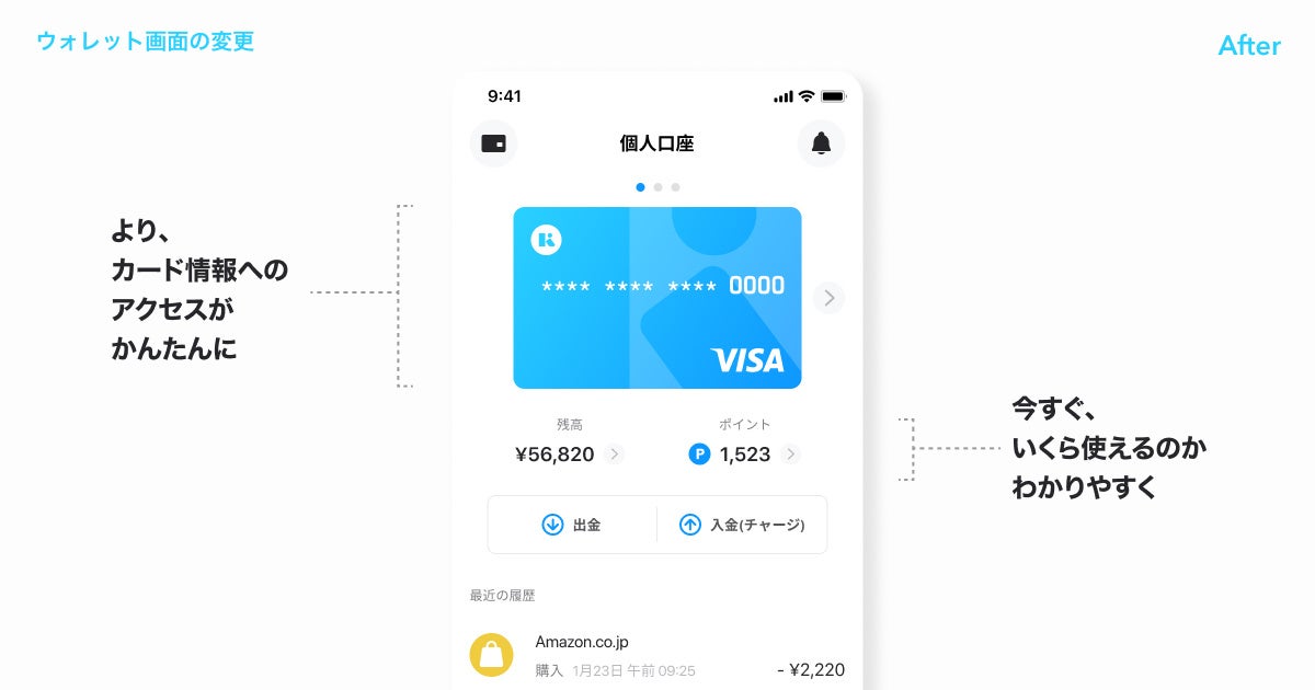 Kyashアプリを起動すると表示される「ウォレット画面」を以下の通り変更しました。