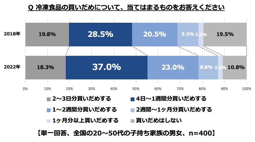 ハイアールジャパンセールス株式会社(本社:大阪市、代表取締役社長:杜 鏡国)は、この度、全国20代〜50代の子どもと同居する男女400名を対象に、「2022年版・家庭の冷凍冷蔵庫・冷凍庫(冷凍室)の使用状況に関する意識調査」を実施いたしました。2018年に実施した同調査と比較し、コロナ禍を経て変化した家庭の冷凍事情に関する最新の実態について発表いたします。