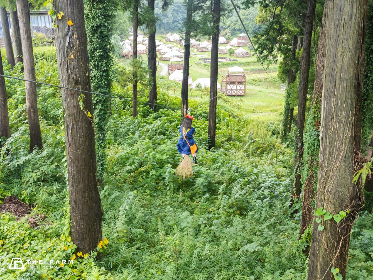 180mものTHE FARMの森の斜面を滑走し、普段はスリル満点のアクティビティとして人気を集めるジップラインですが、この日はただ滑るだけでは終わりません。