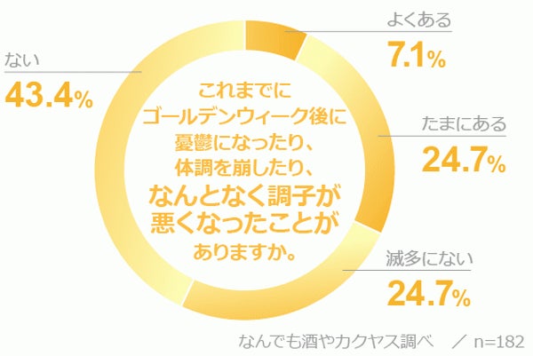 そんな五月病の症状が「よくある」と回答した人は7%、「たまにある」は25%で、五月病を感じる人は合わせて32%と、全体の3分の1程度にとどまりました。