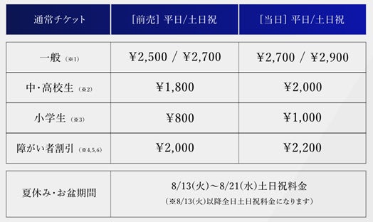 ※購入いただいたチケットの入場開始時刻から入場までお待ちいただく場合がございます。