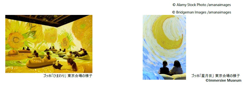 「Immersive Museum OSAKA 2024」は、近年演劇やアート、エンターテインメントのジャンルで世界的なトレンドとなっている“Immersive=没入感”をキーワードとする、新たなアート体験プログラムです。特別な音響効果と壁面・床面全てに投 影される没入映像を組み合わせて、広大な屋内空間に名画の世界を再現。参加者はその空間内を自由に歩き回ることができ、視覚を通した「見る」「鑑賞する」といった行為を超え、音と映像によりあたかも全身で名画の世界に入り込んだよう な究極のアート体験が可能になります。日本開催第二弾となる今回のテーマは“ポスト印象派”POST IMPRESSIONISM。世界的に人気の高いゴッホの「ひまわり」、「星月夜」やスーラ「グランド・ジャット島の日曜日の午後」といった、ポスト印象派の名画の数々を映像化しました。高さ6m、約450㎡の巨大空間*に、ポスト印象派の作家たちの視点で見た作品世界を再現し、アートの“鑑賞”体験を大きく進化させます。*高さ、面積とも空間面積全体を指します。投影面積は異なります。