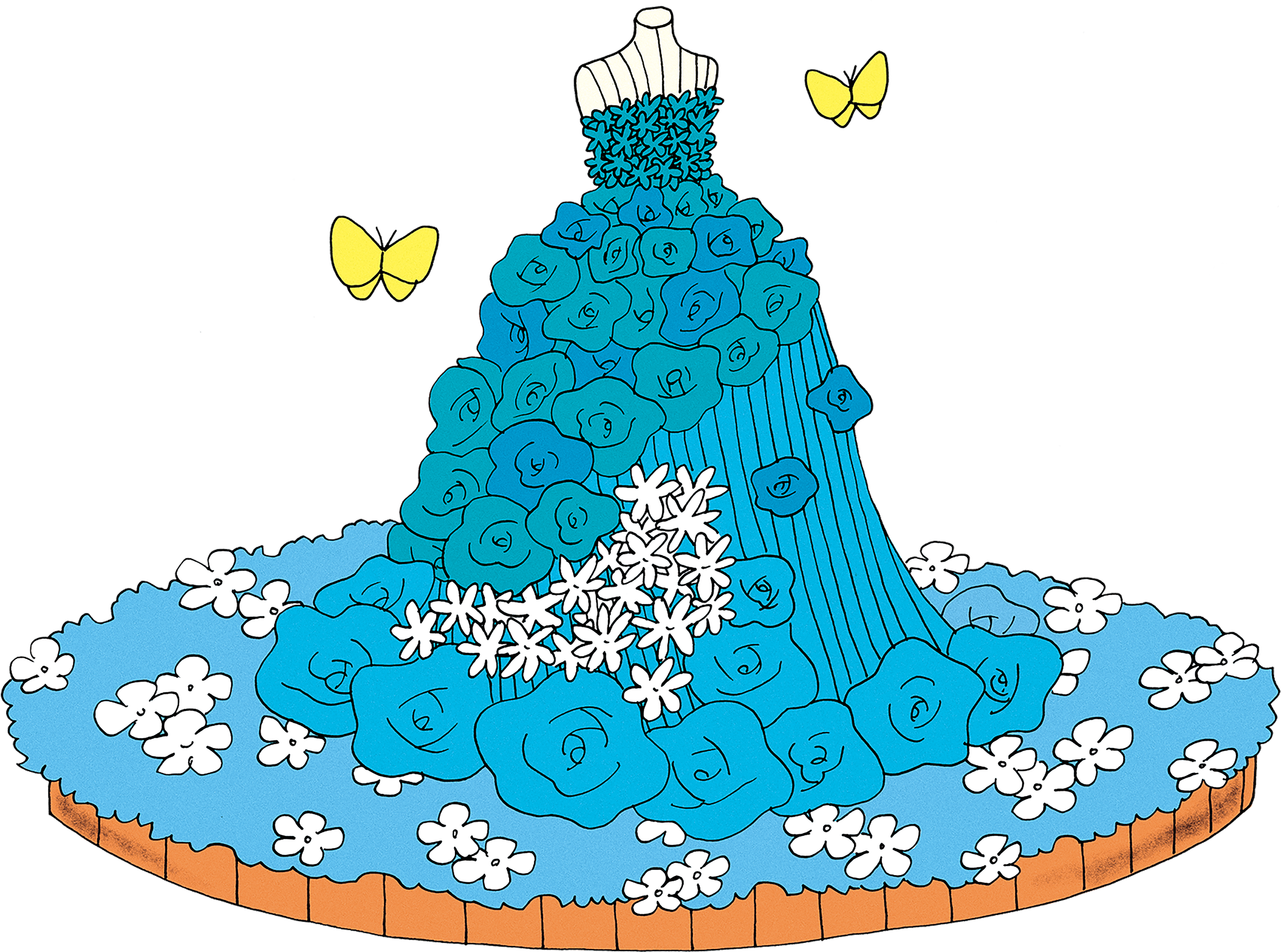 ⑧フラワードレス:青基調のお花で装飾したドレスのオブジェから顔を出すと、まるで着用しているかのようなお写真に。