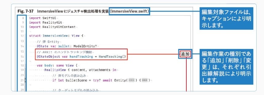 画面とテキストをふんだんに使って、コード編集の要点と、コードの意味を分かりやすく