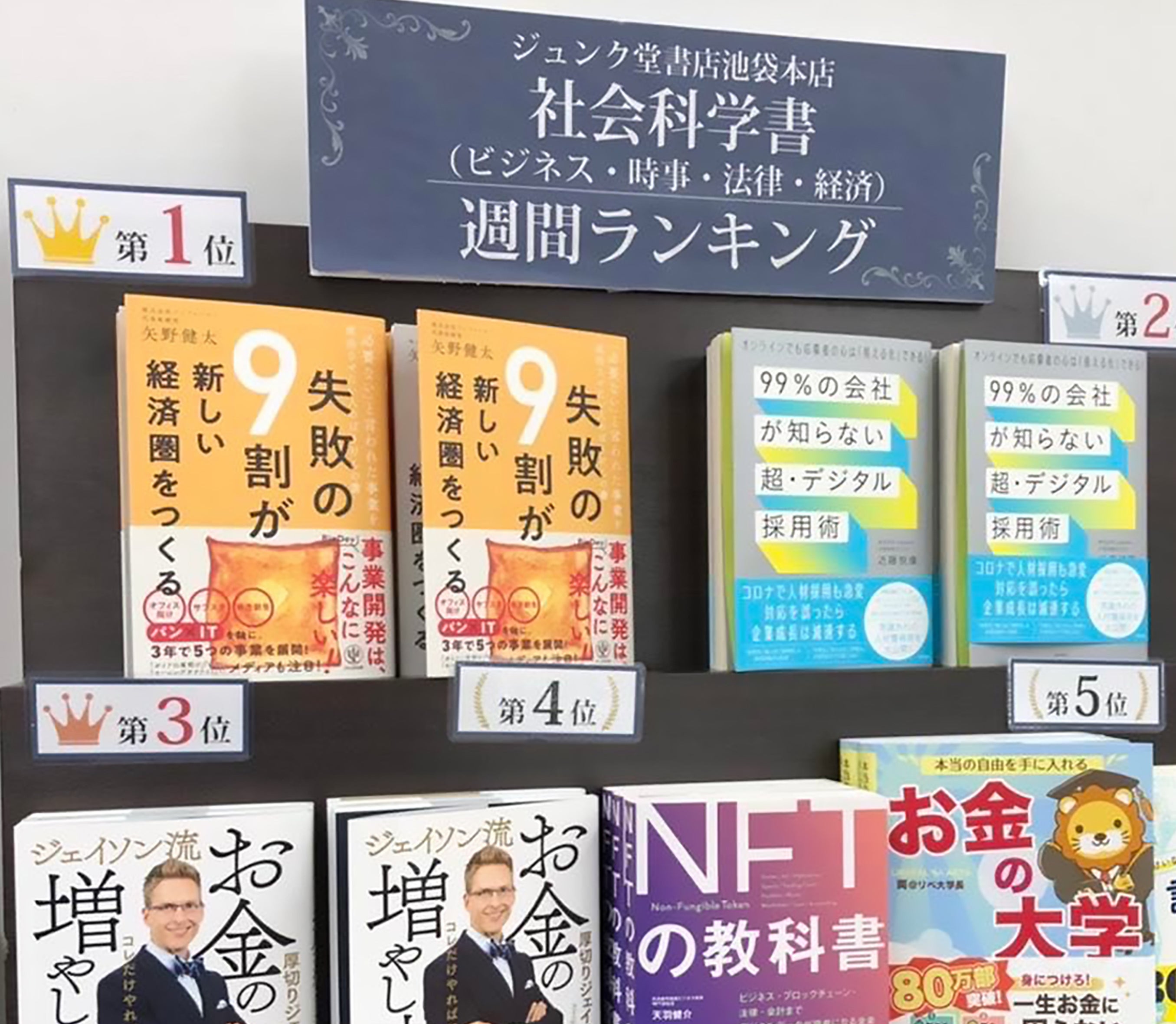 代表取締役:矢野 健太、 https://panforyou.jp/ )は、代表取締役 矢野健太初の著書で2022年1月20日にかんき出版より発売されたBizDev(事業開発)の入門書『失敗の9割が新しい経済圏をつくる』が、ジュンク堂池袋本店の週間総合ランキング&社会科学書週間ランキングにて同時1位を獲得しました。