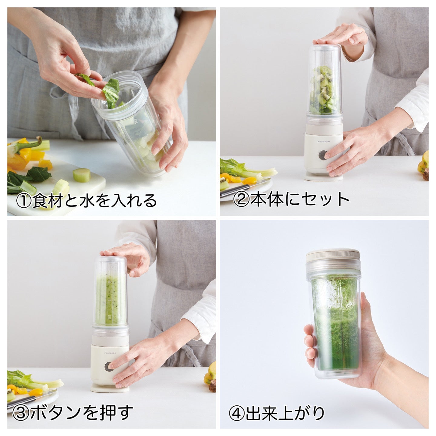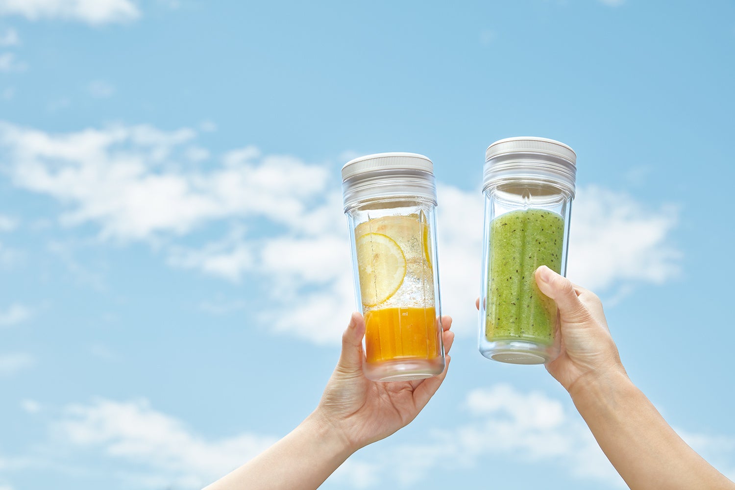 夜、ボトルにフルーツなどを入れて 冷やしておけば、翌朝すぐに フレッシュなスムージーが作れます