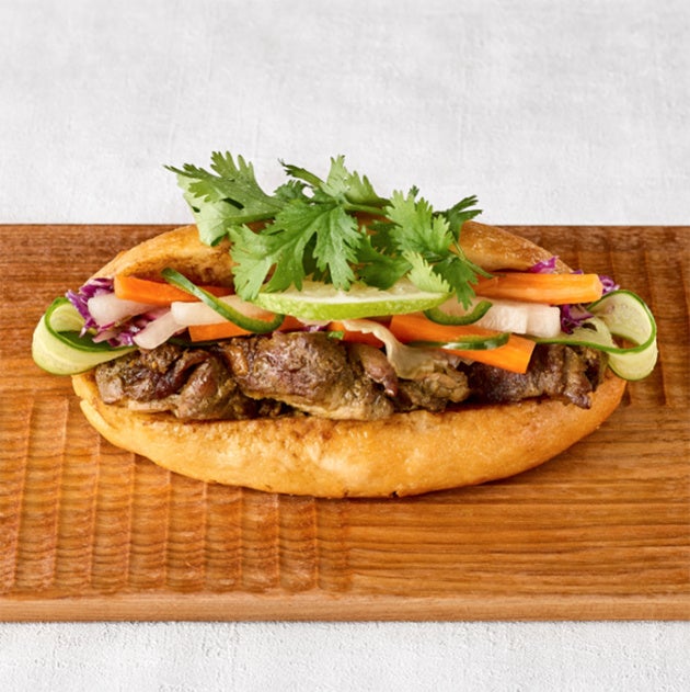 アーモンドミルクヨーグルトを使ったオリジナルカレーソースに、アサイーを加えて深みをプラス。しっとりジューシーで女性に嬉しいバインミーです。