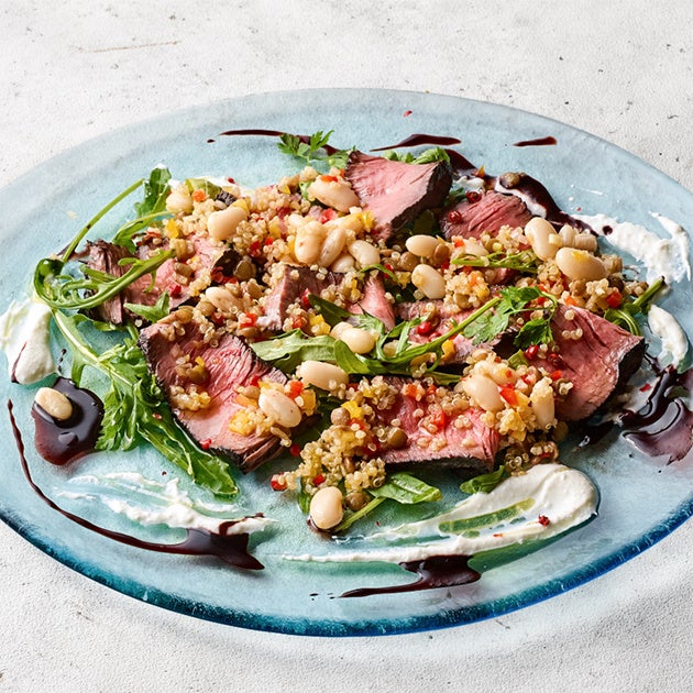 キヌアと豆類のサラダ フレッシュチーズとアサイーのソース