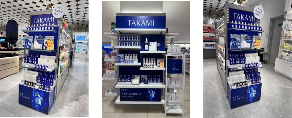 一人でも多くのお客さまに“タカミスキンピール”を手にしていただきたく、普段取り扱いのない店舗において、“タカミスキンピール”と、人気No.1のビタミンC美容液“タカミエッセンス5C+E”、“タカミリップ”を、期間限定で販売いたします。さらにプレゼント付きの特別企画もございますので、お近くにお越しの際はぜひお立ち寄りください。