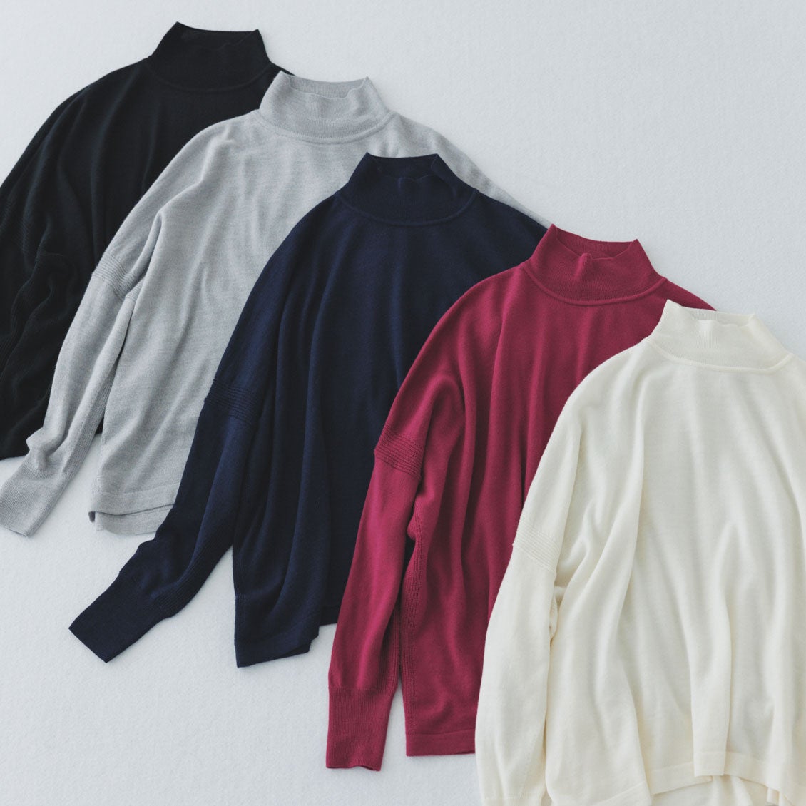 『首もとスッキリのハイネックニット』今秋は、新色「ネイビー」「ラズベリー」を追加