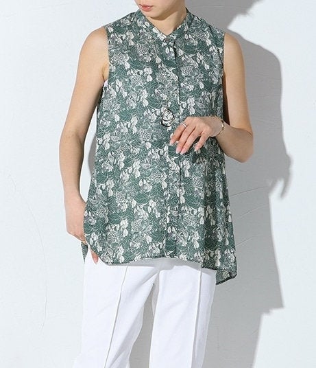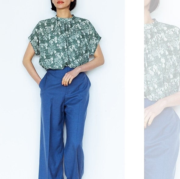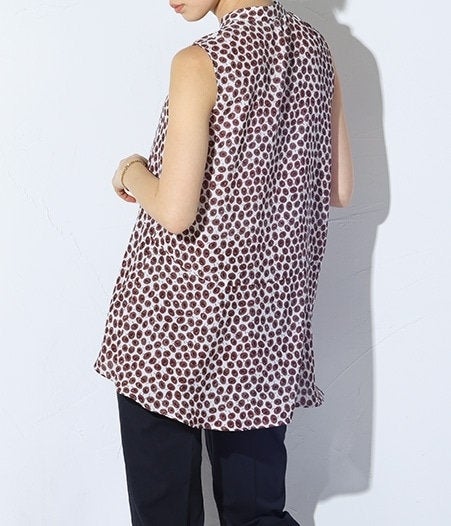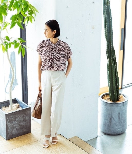 タンポポの綿毛の様な自然を感じる花柄。オフホワイト X ブラウンで、クリアで女性らしく、ノーブルに。落ち感のあるシフォン素材でエアリーに華やかに。デザインブラウスでちょっと大人のリゾートに。