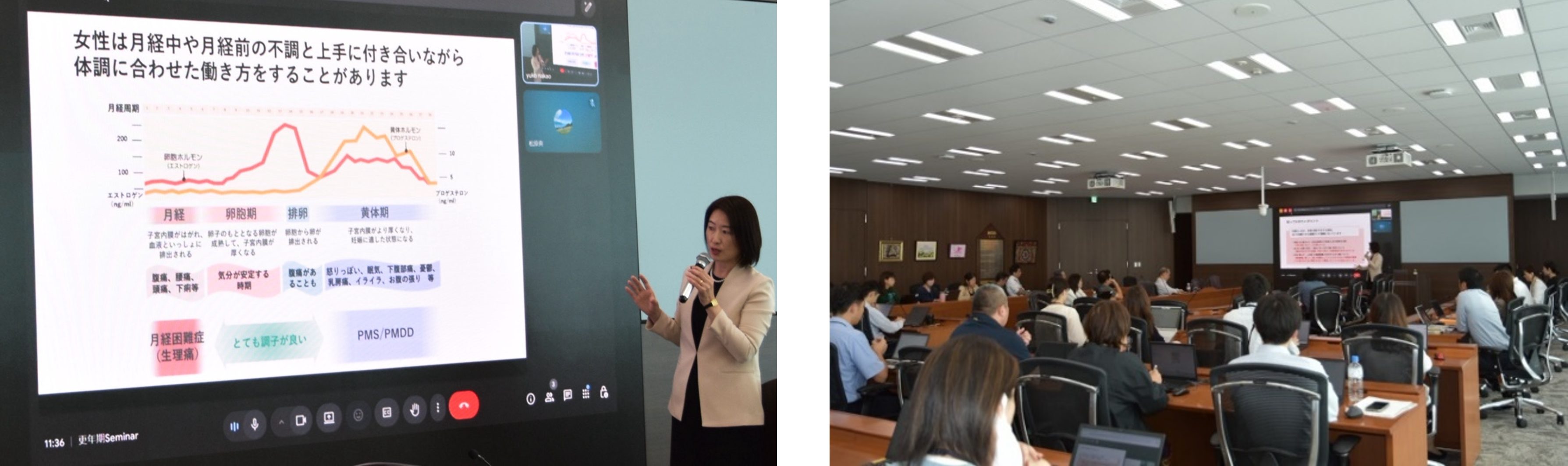 本研修では、公益社団法人女性の健康とメノポーズ協会 専門講師の松原 爽氏を講師としてお招きし、更年期に関する正しい知識、ライフステージに応じた健康支援のあり方や職場での相互理解の重要性について学びを深めました。
