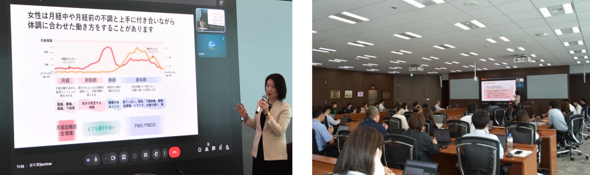 当社では、2024年より掲げるコーポレート・ブランド・エッセンス「Love Your Possibilities」のもと、すべての人が秘めている限りない可能性を信じ、その可能性を慈愛にあふれた利他の心で発揮することによって互いに支え合う「共生社会の実現」を目指しています。その一環として、「世界メノポーズデー」および「メノポーズ週間」に合わせ、女性のライフステージにおける健康課題への理解を深め、誰もが安心して働ける職場環境づくりを目的に、全社員を対象とした研修を実施いたしました。本研修は、対面とオンラインのハイブリッド形式で実施し、全社員が参加できる体制を整えました。 更年期は多くの女性が経験する重要なライフステージであり、症状には個人差があることから、正しい知識と相互理解が不可欠です。