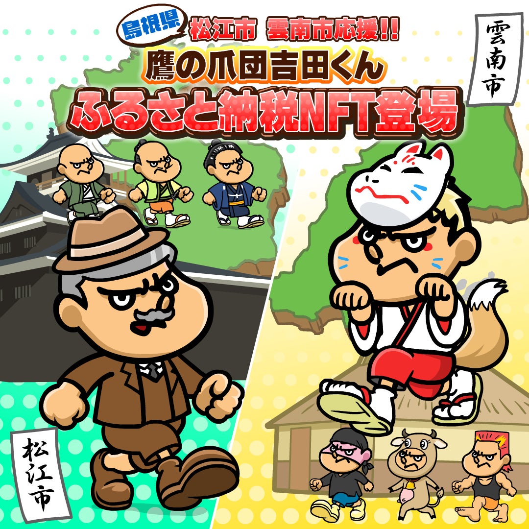 島根県松江市、雲南市初!ふるさと納税返礼品にNFTアートが登場。「鷹の爪団NFT」とコラボしたふるさと納税NFT受付開始!