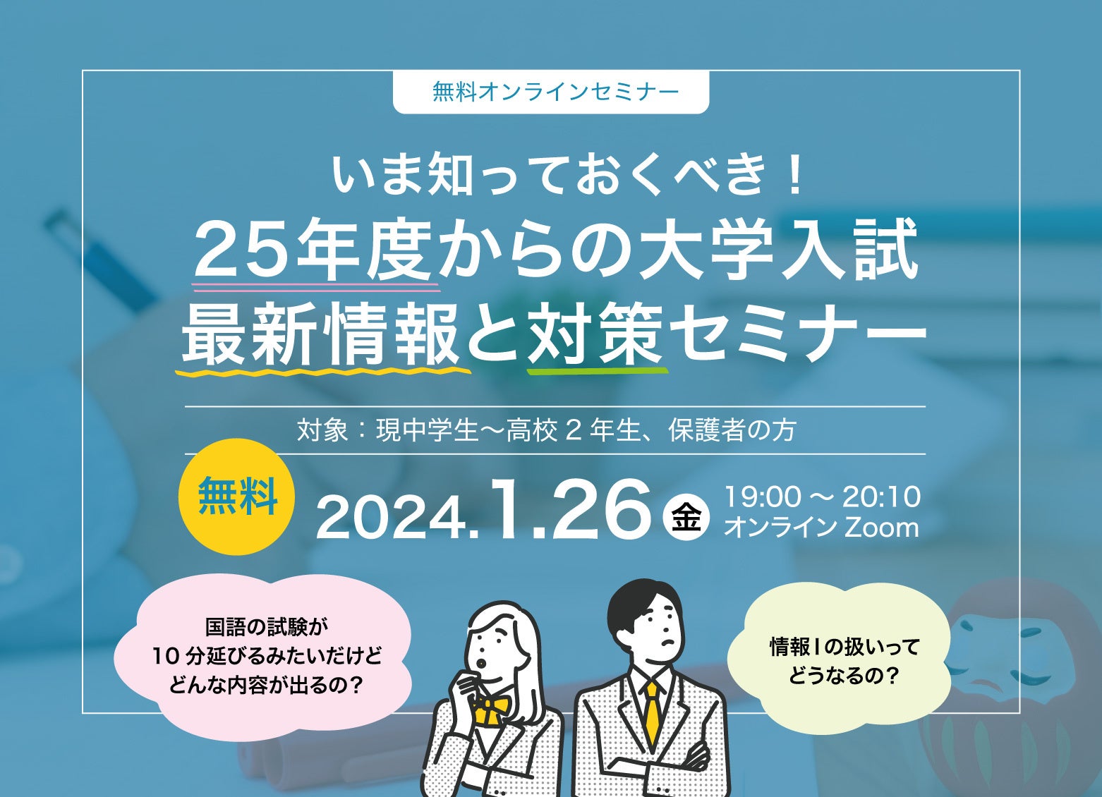 【新高3生とその保護者様必見!1月26日オンライン開催】「いま知っておくべき!25年度からの大学入試 最新情報と対策セミナー」