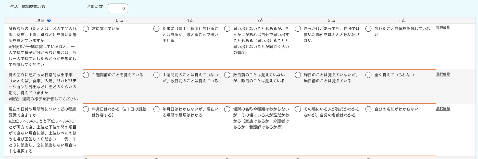 認知症の新評価項目の「生活・認知機能尺度」に対応